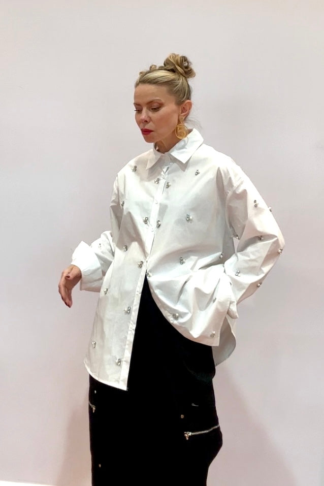 Crystal Bee Oversized Shirt White